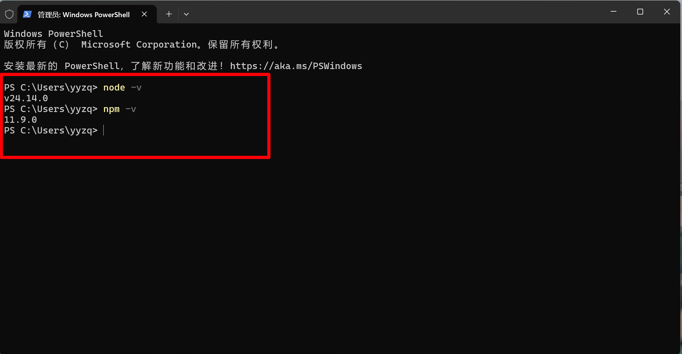 验证 npm 版本: