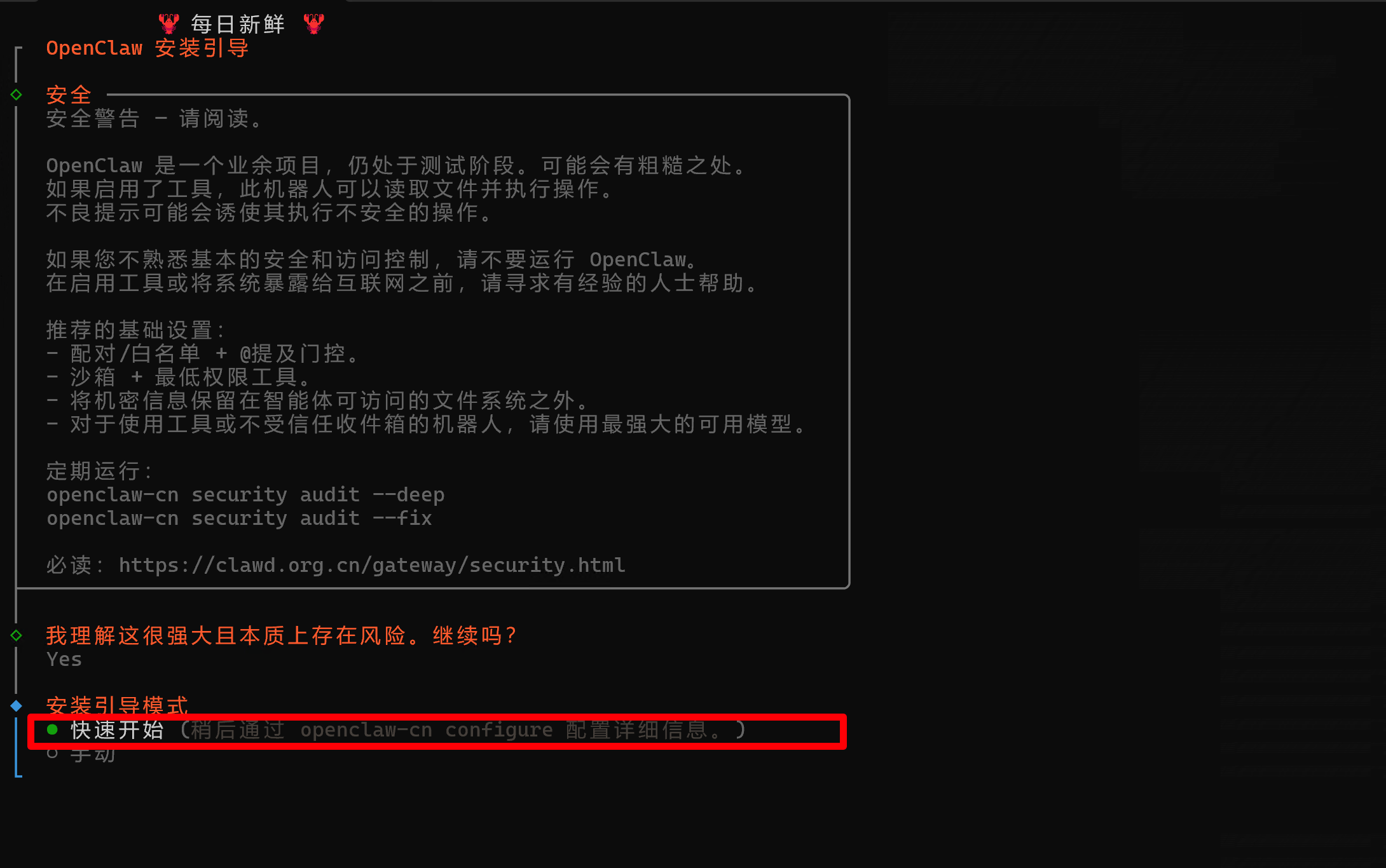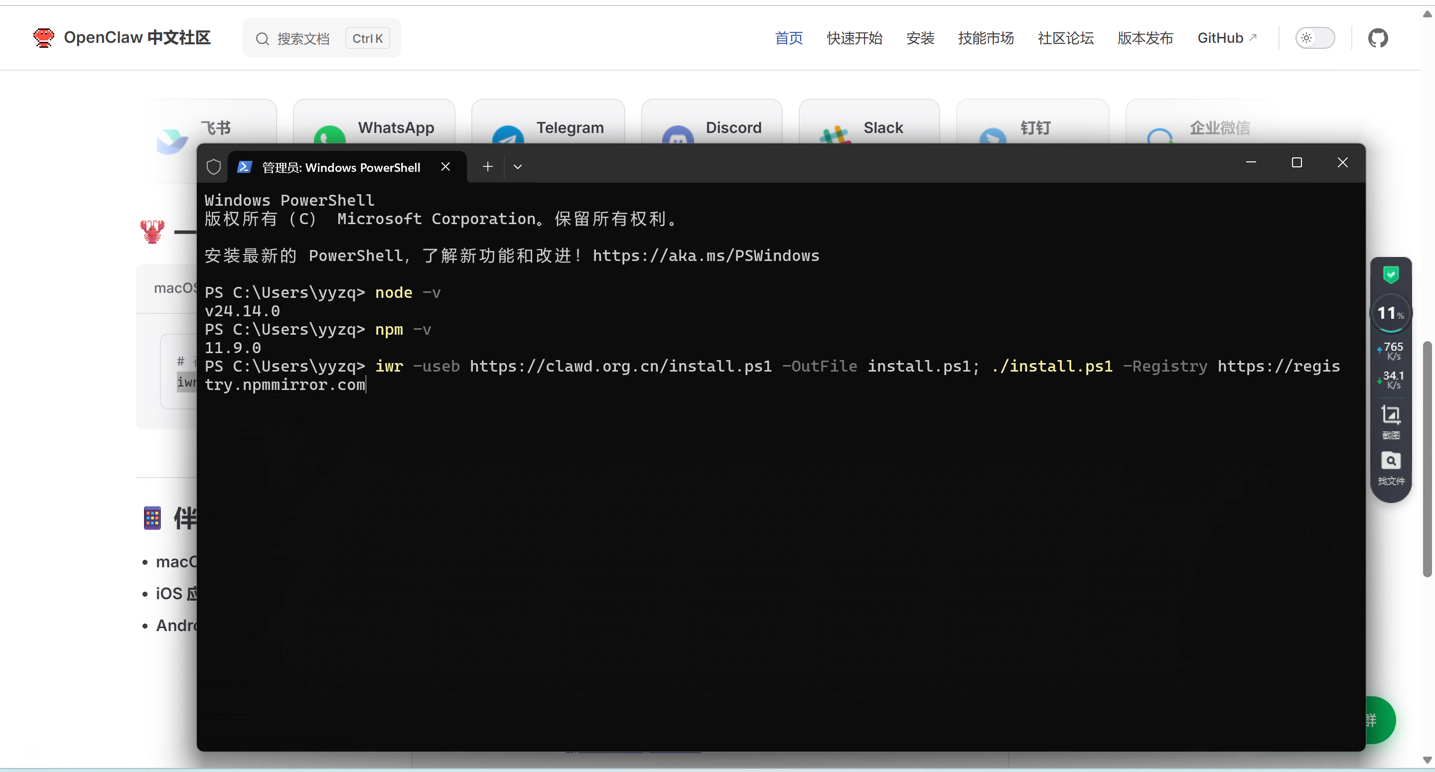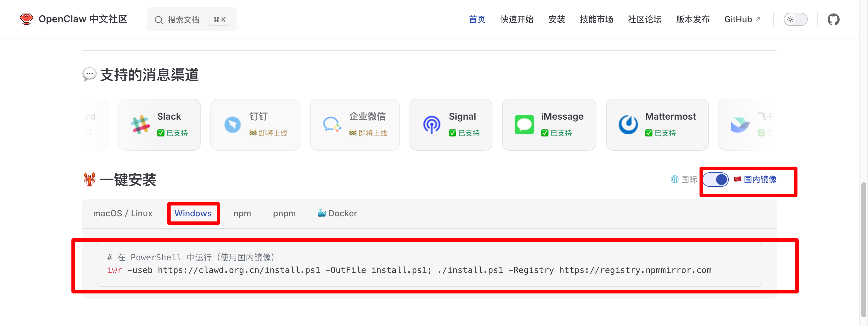 然后就是打开OpenClaw 中文社区使用一键安装脚本进行安装