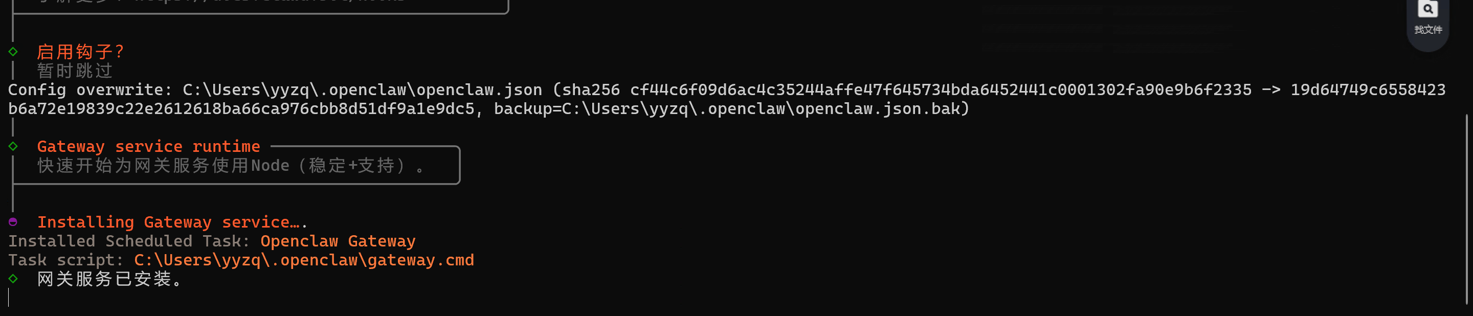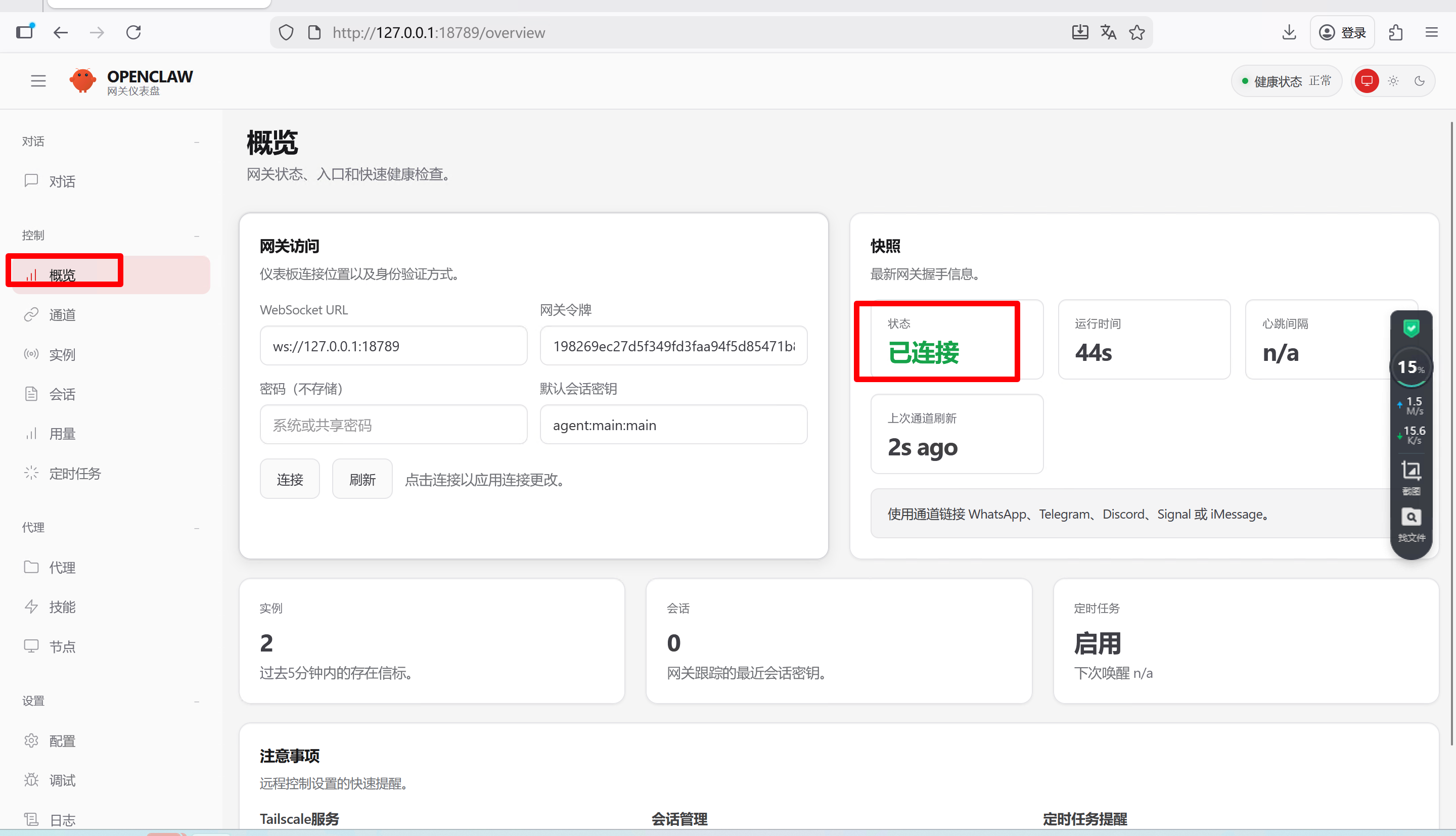 网关处于启动状态(可通过 openclaw-cn gateway status 检查状态)