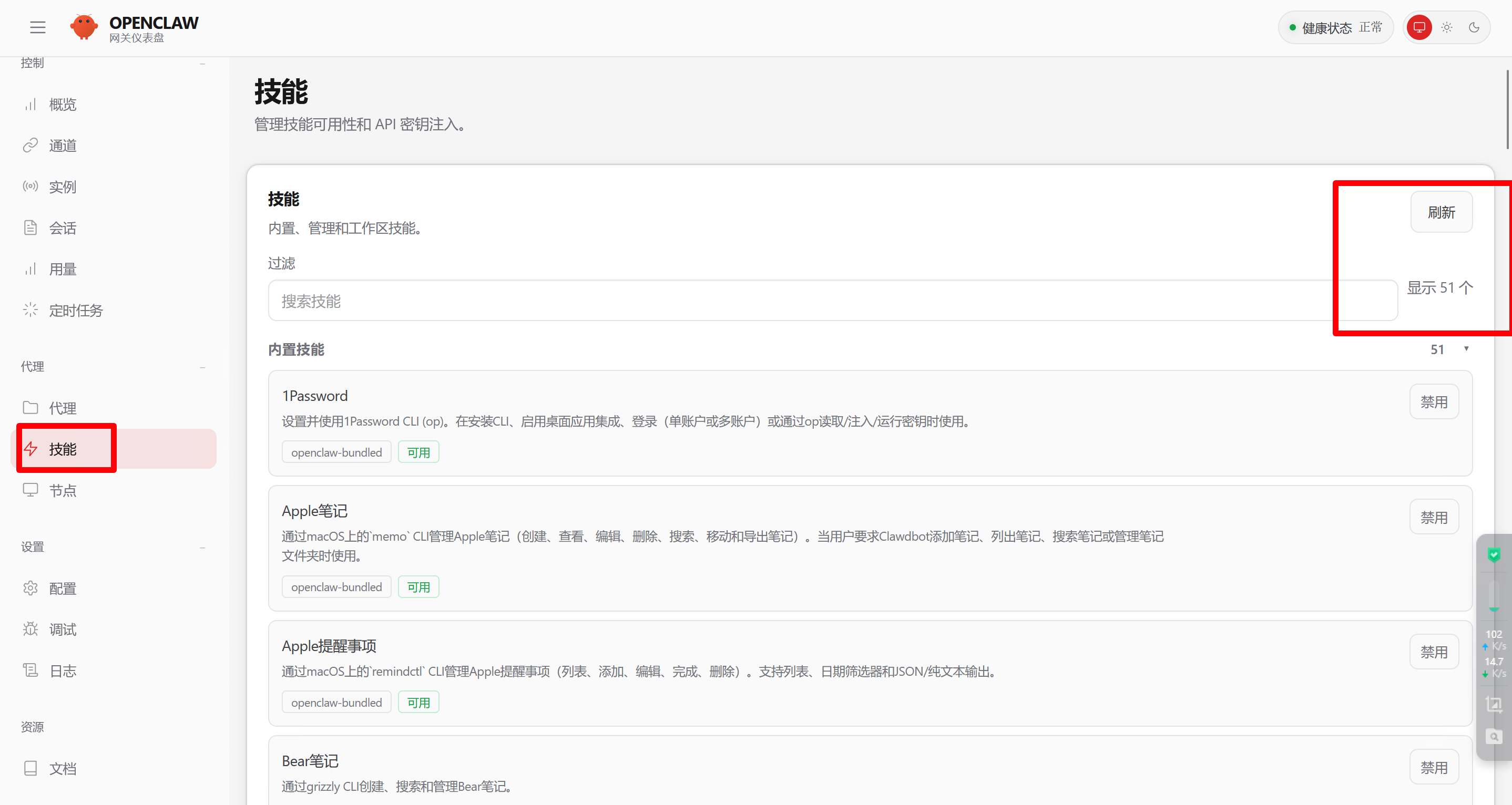 自带51个技能Skills