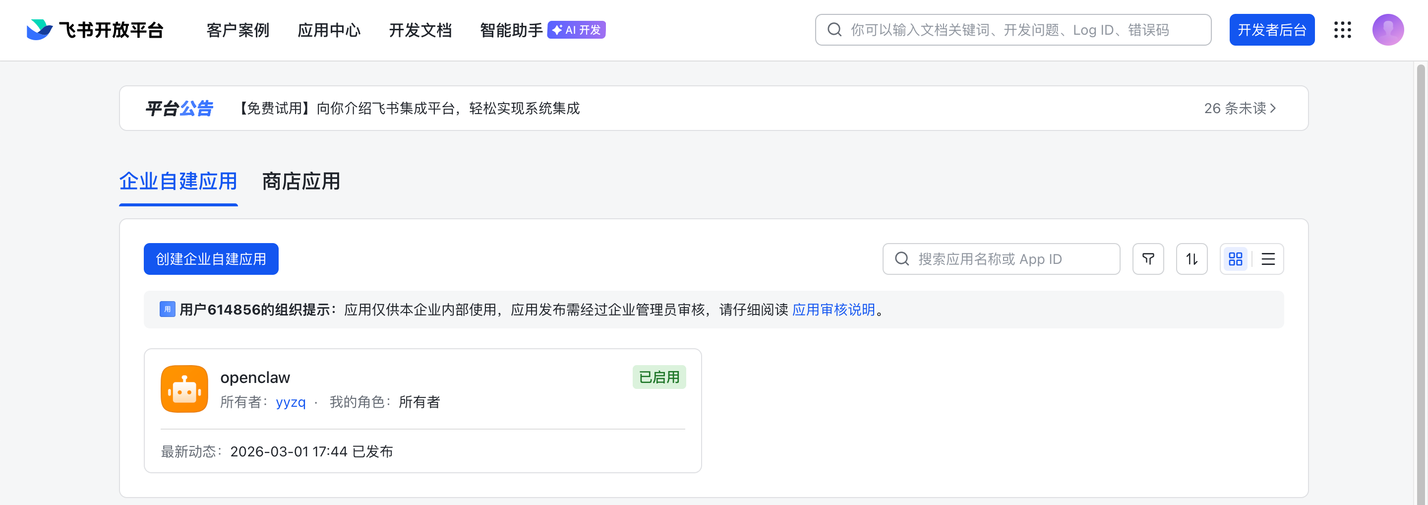 点击 创建企业自建应用
