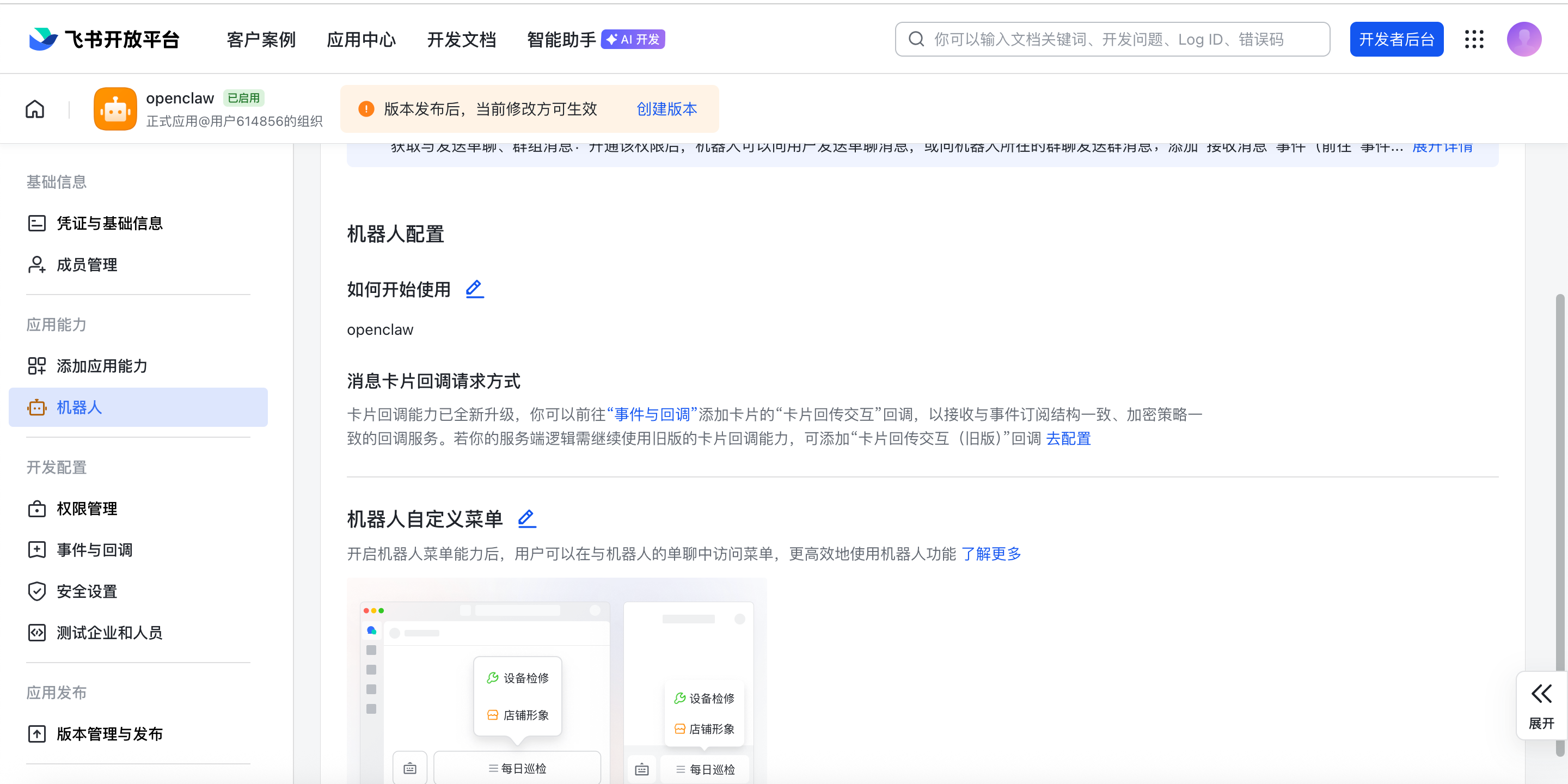 在 应用能力 > 机器人 页面: