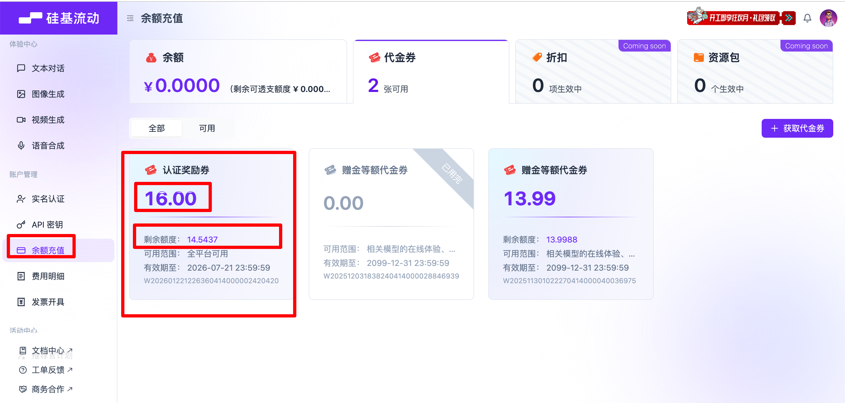 使用各种API默认直接扣抵用金
