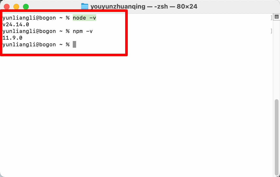 验证 Node.js 版本: